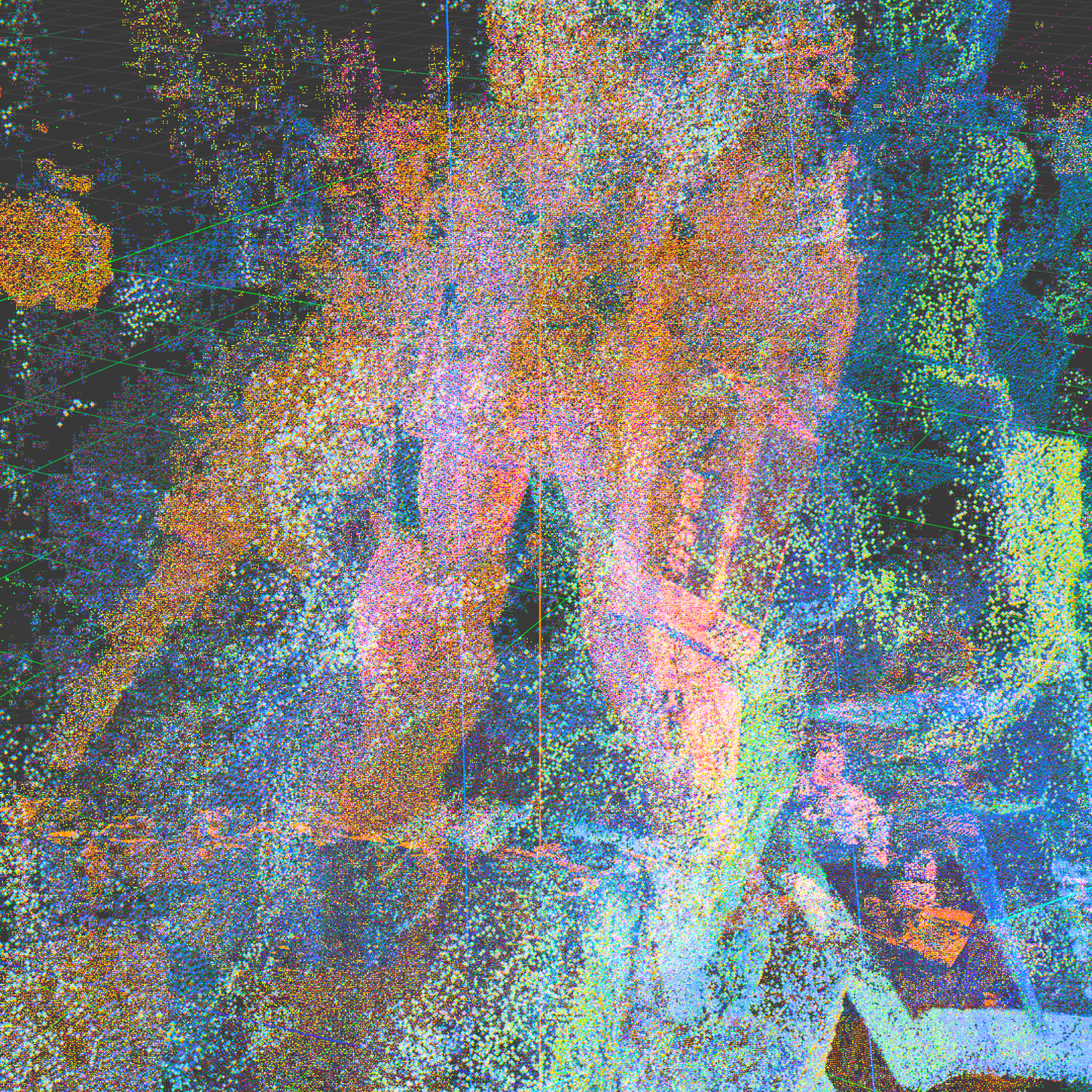 The series begins with Default Code Images (device filenames/timestamps), printed and hand-marked as Re-Coding Notes, then splits into two reconstructions: photogrammetry (edges, spatial trace) and Gaussian Splatting (radiant density). Glitches, voids, and soft edges are kept; technical “failures” become evidence of mediation—form as feeling.