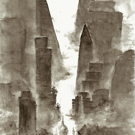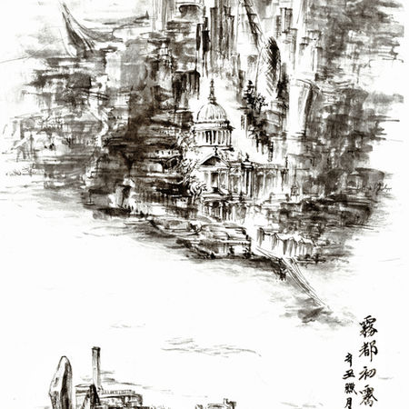 Part I, ‘Find Shan-shui in London’ : London’s skyline is translated into shan-shui ink panels; 1-point laser surveys set the geometry, while dilute carbon ink maps human scale against steel “mountains.”