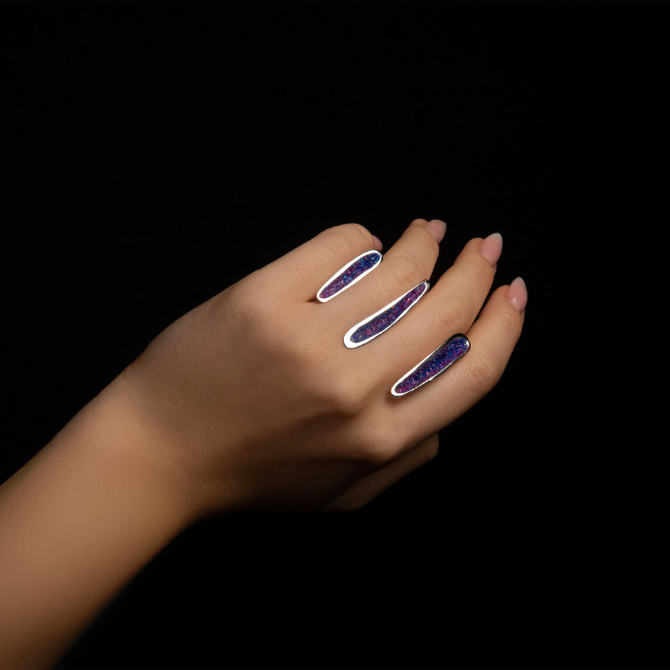 Notable accolades include the Venice Design Week Award (2024) and the Goldsmiths’ Craft & Design Council Awards (2025). Exhibition highlights include the Contemporary Goldsmithing Exhibition at Madrid Design Festival, Venice Design Week, Romanian Jewellery Week, Cluster Contemporary Jewellery, Inflow Expo, Autor Contemporary Jewelry Fair, and Munich Jewellery Week.