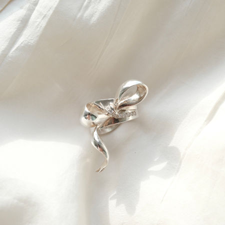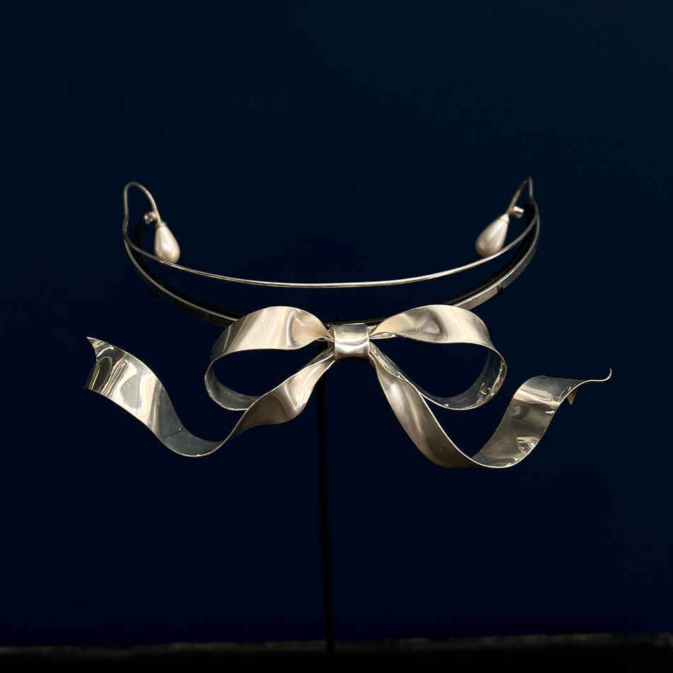 In the making process, a combination of techniques is employed. Designs are developed using CAD programs for 3D design and traditional jewelry techniques like anticlastic forming. Each bow is meticulously hammered to create a soft and refined edge, giving the impression of a ribbon delicately floating in the air. This meticulous craftsmanship ensures the delicate appearance of each piece and emphasizes the beauty of feminist elegance.