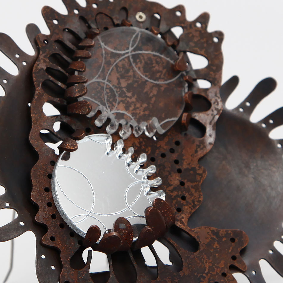 There are two identities living inside the physical me. One of the duo is blank, calm, logical, organized, and restricted; the other one is full, dramatic, emotional, chaotic, and free. I am intrigued and inspired by the process of uniting materials that have distinctive texture, color, toughness, and transparency, which enables me to express my dual identities, and helps me visualize the growth of a newborn from an ambiguous seed to a matured form.