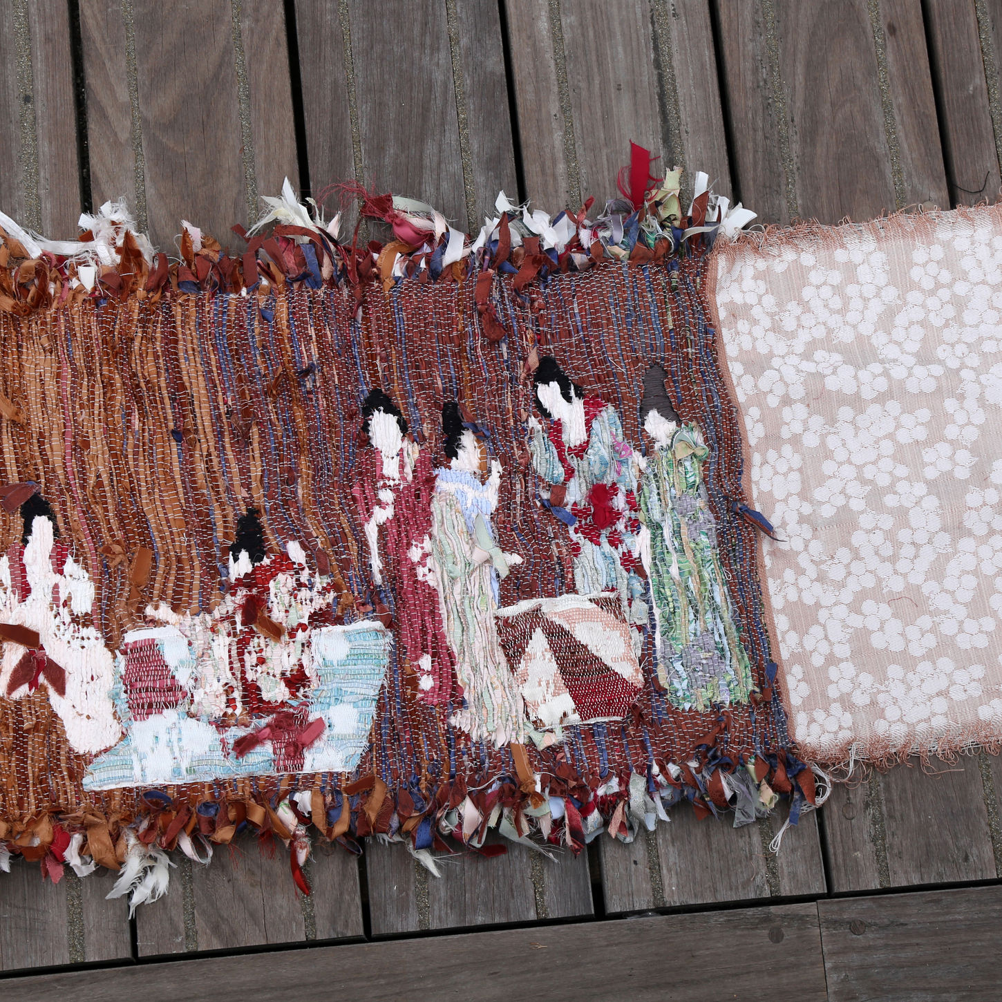 This work explores sustainable silk materials and the upcycle approach to waste. My hometown, renowned for silk exports, inspired my research into pre-consumer silk waste. Familiar with the material since childhood, I aimed to make its use more ethical. In this project I focus on recycled silk brocades, reconstructing the material through aesthetics and research. The juxtaposition of women in modern factories and the ancient silk weaving industry informs my work, highlighting identity and labour issues in silk production. I hope this piece conveys the narrative of natural recycle material, encouraging audiences to consider sustainable materials and raising awareness of women's labour issues in the silk weaving industry.
