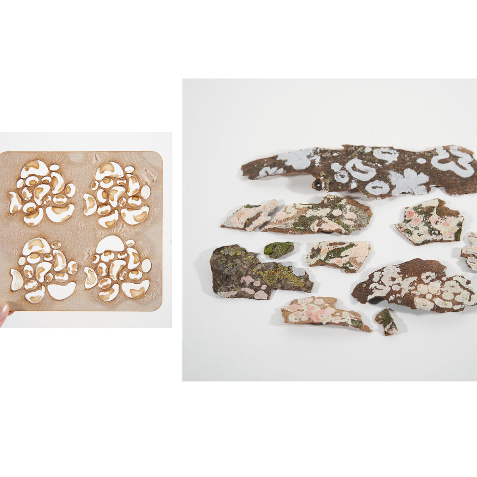 While translating X. parietina’s properties under nitrogen pollution through textiles’ language, Yuxin hopes people could understand more about X. parietina's unique language, and this project also aims to lead people to think more about their living environment and relationship with nature under climate issues.