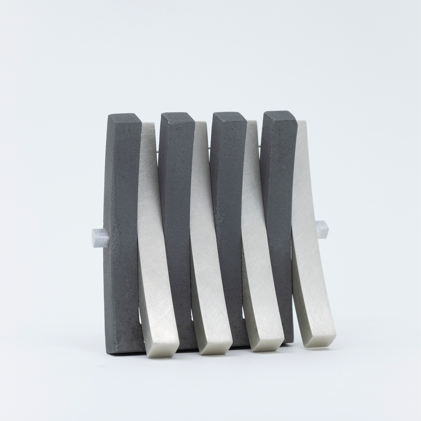 I present a series of brooches that combine silver and aluminium through traditional handcraft and modern industrial techniques. I take equipment structures and fleeting moments from my making process as prototypes, translating what is usually hidden behind finished work into form, construction details, and material contrast. For me, the studio environment is not only a source of imagery but also an active influence: I work as both the maker and a constituent element within the process. By staging a dialogue between handcrafted silver and precisely machined, low-saturation coloured aluminium, I explore a symbiotic space where heritage craft and contemporary production can speak together.